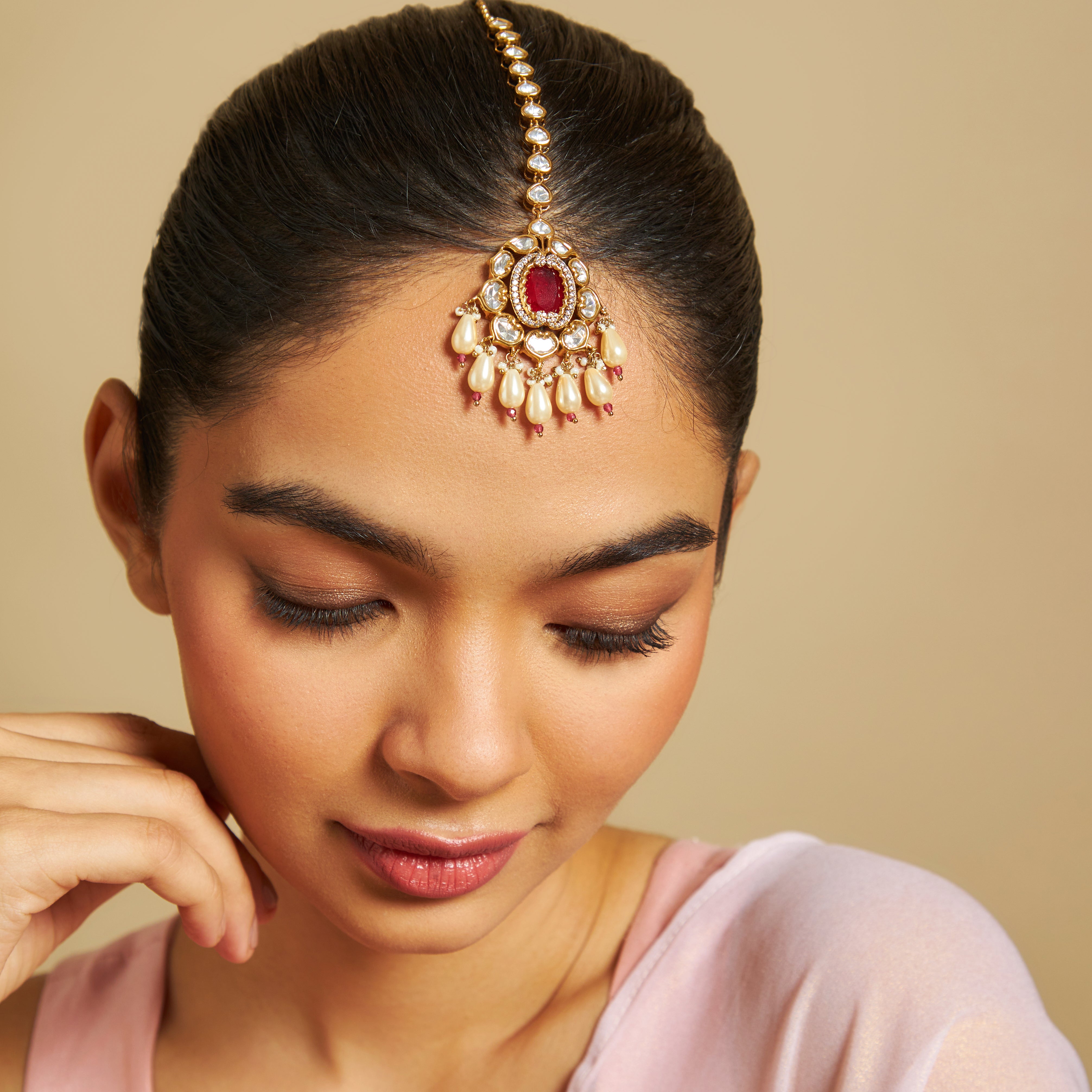 A tikka completes any festive ensemble. This is your fantastic opportunity to get the best kundan tikka that Kushal's has to offer. It is attractive and enhances your look; it is made of beads and kundan stones. With this stunning tikka, which has a colourful stone in the centre, you will stand out from the crowd and capture everyone's attention.