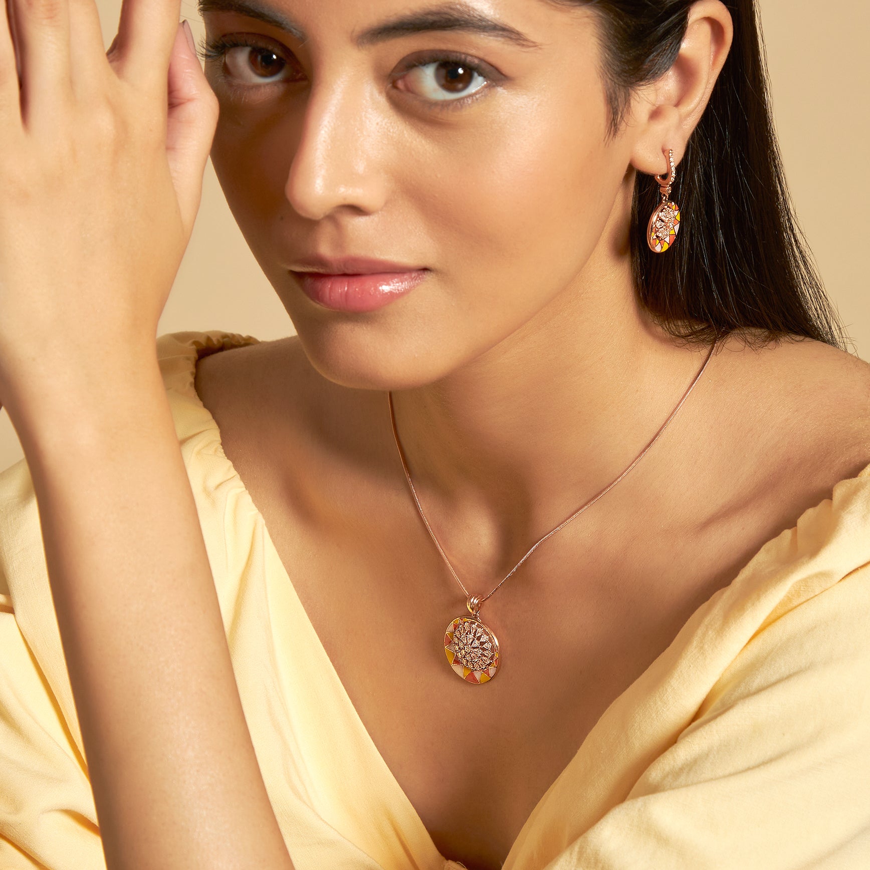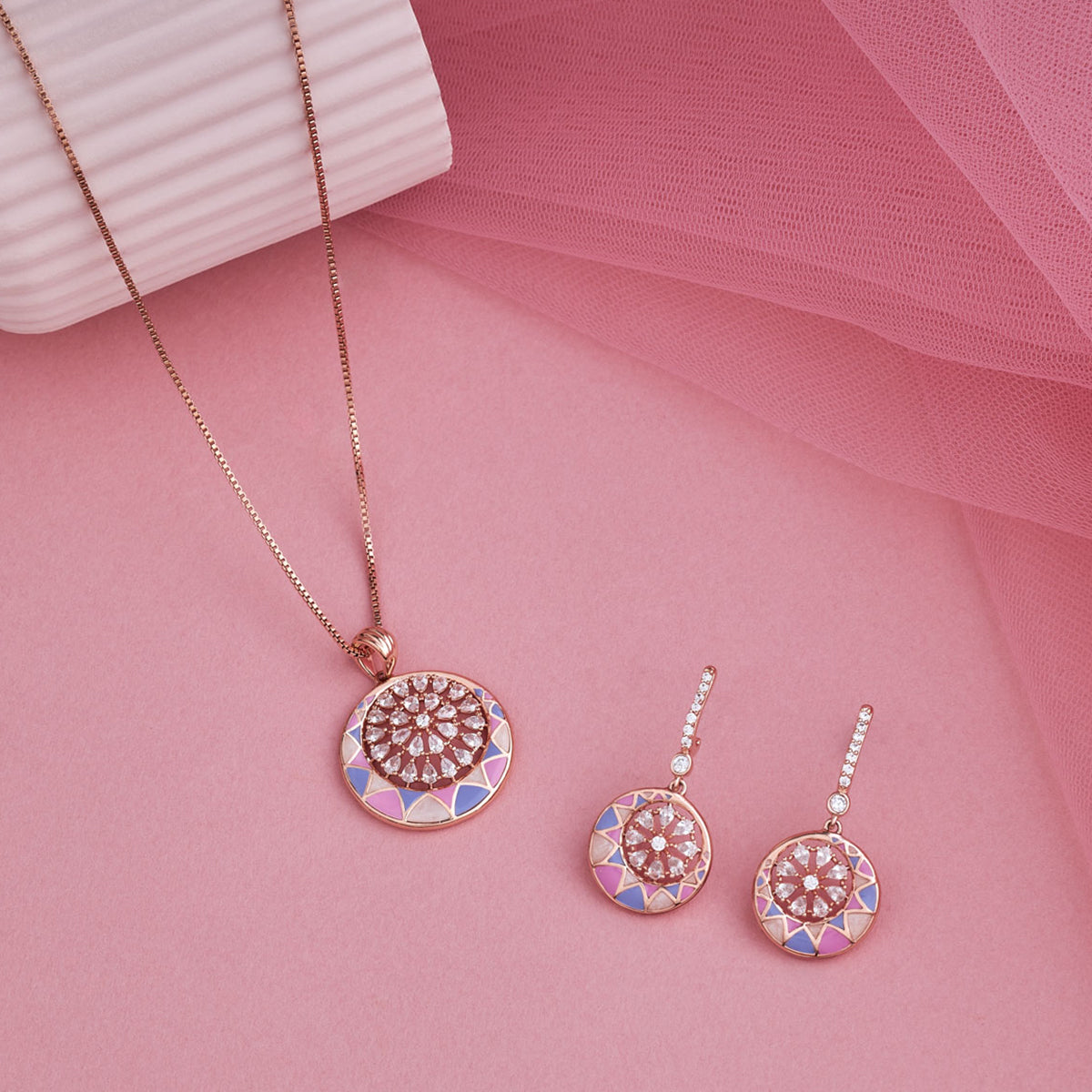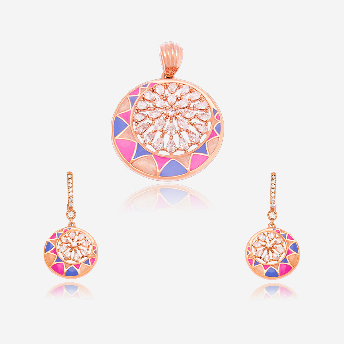 Step into a world of timeless elegance with our Meenakari Jewelry Collection. From enchanting Meenakari Earrings to stunning Pendant Sets and Pendants, each piece is meticulously crafted to perfection. Available in a variety of captivating colours, including Blue, Pink, Orange and Lavender, these accessories add a touch of sophistication to every ensemble.