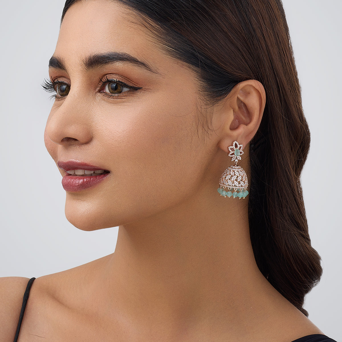 These lovely Zircon earrings can enhance the elegance of any outfit and add a touch of sophistication to your overall look. These earrings radiate a regal vibe and are perfect for women who treasure owning distinctive fashion accessories. You can match them with your preferred traditional or casual attire and witness the enchantment they bring.