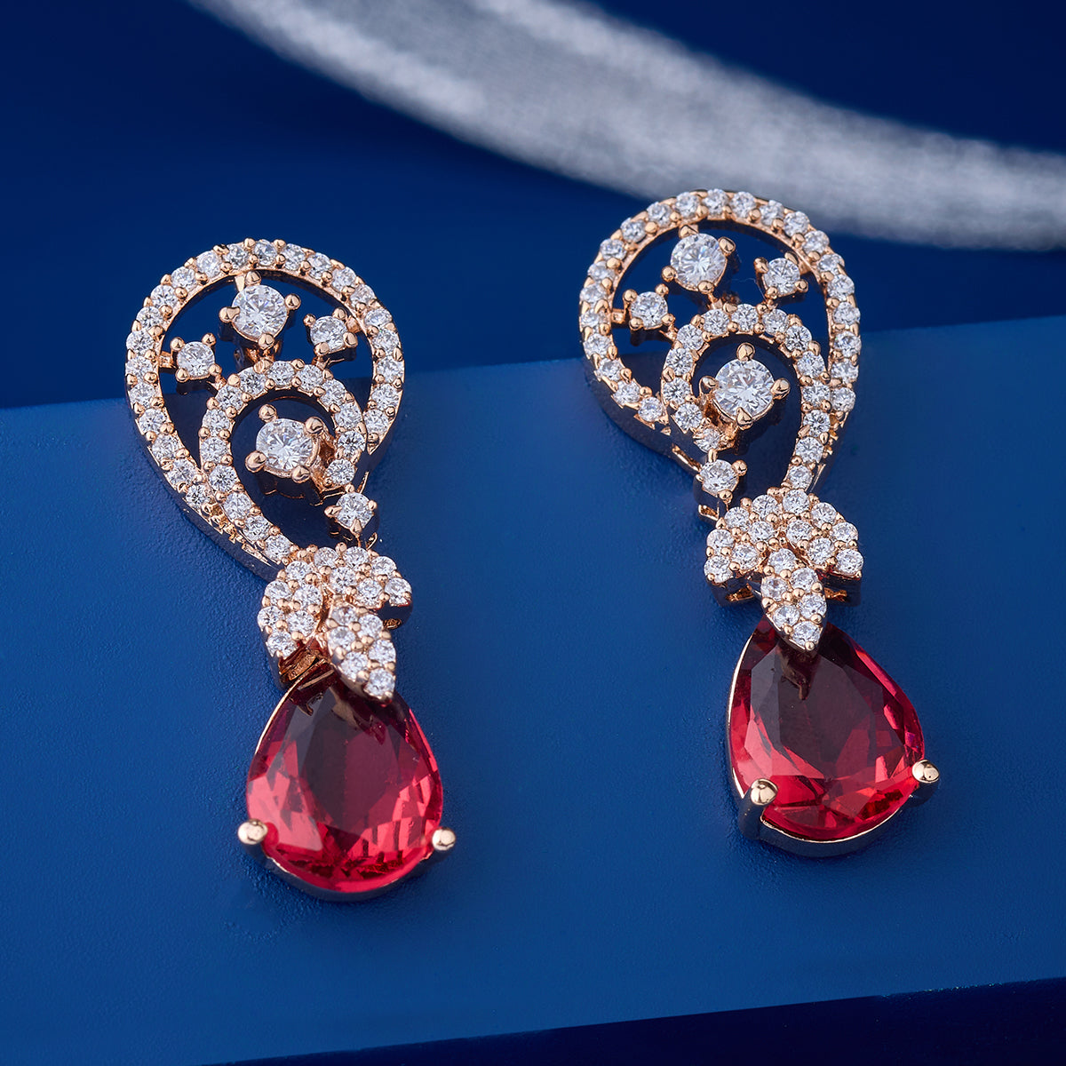 Kushal's Fashion Jewellery Leaf Pattern Zircon Earring