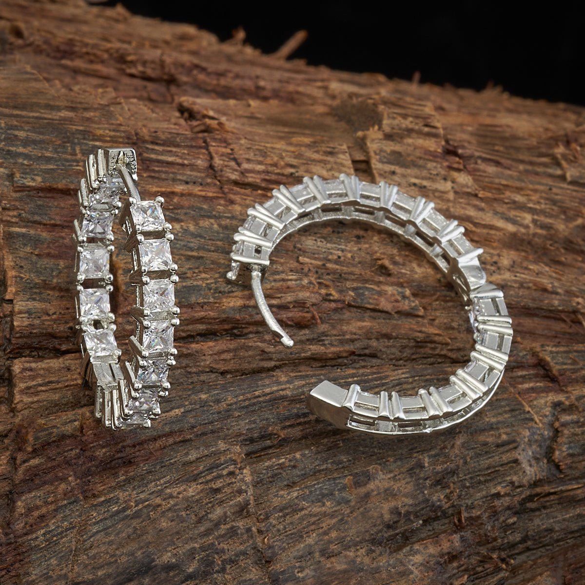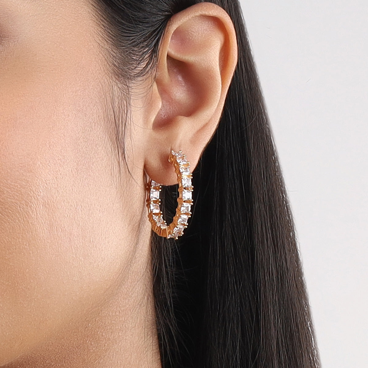 This zircon earring is available in 3 different polishes. This stunning piece of jewellery features three square-shaped stones, each radiating a brilliant sparkle that will catch any person's eye. Its unique design makes it different from other zircon earrings. Try these earrings to wear to a party and become the attraction for the day.