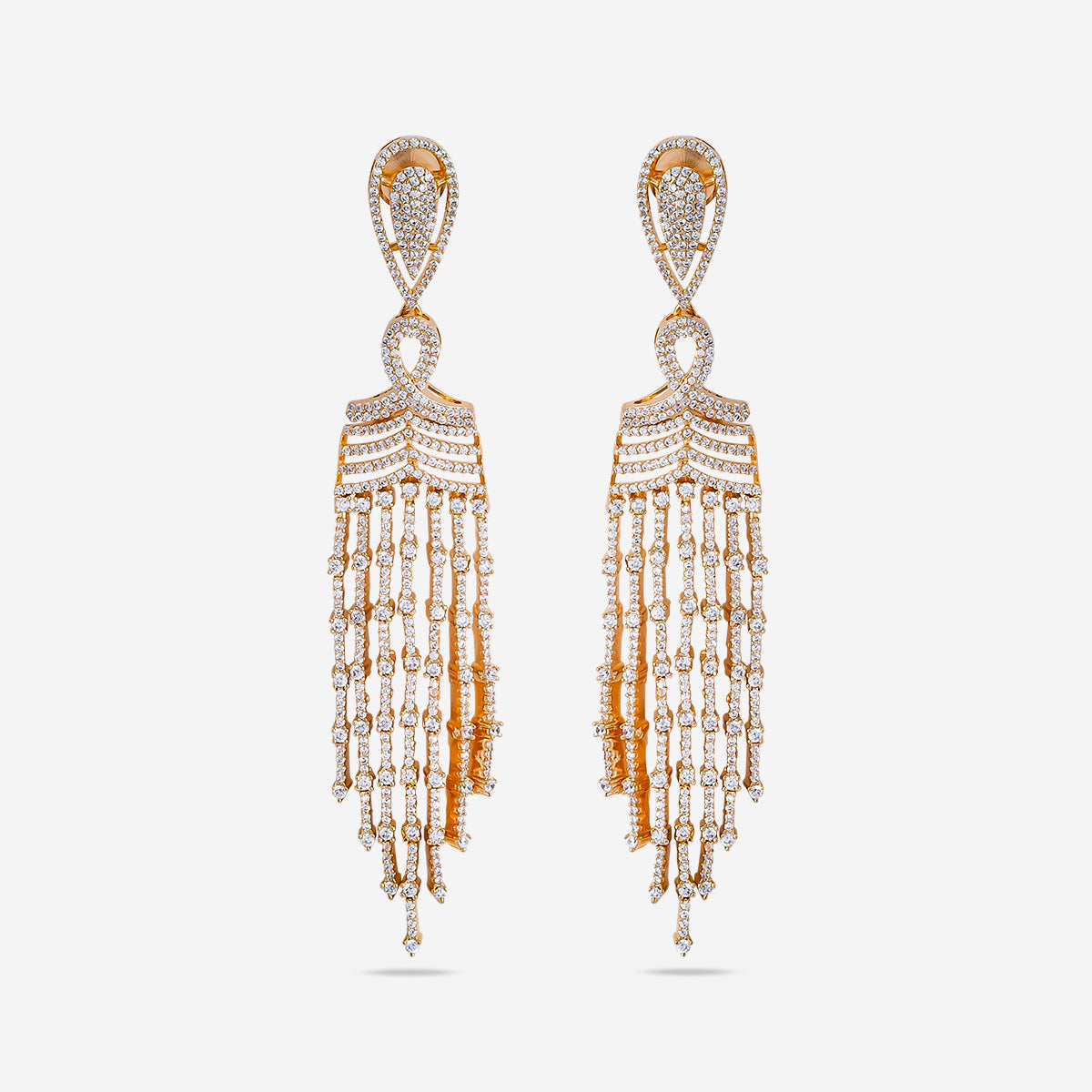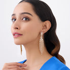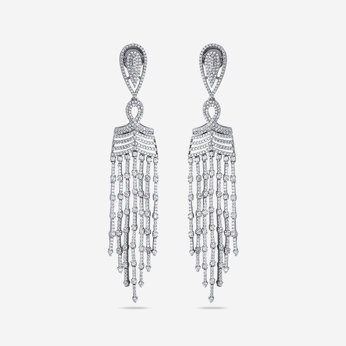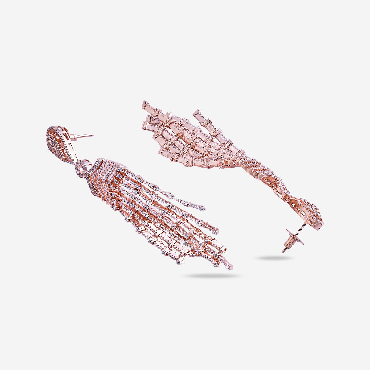 Get ready to dazzle with our captivating zircon earrings, crafted with a lightweight copper alloy base metal. The intricate design showcases stunning zircon stones and graceful dangling strings, exuding an undeniable charm. These earrings are ideal for complementing your traditional dress, allowing you to shine on any special occasion. Elevate your style and be the center of attention with this eye-catching design.