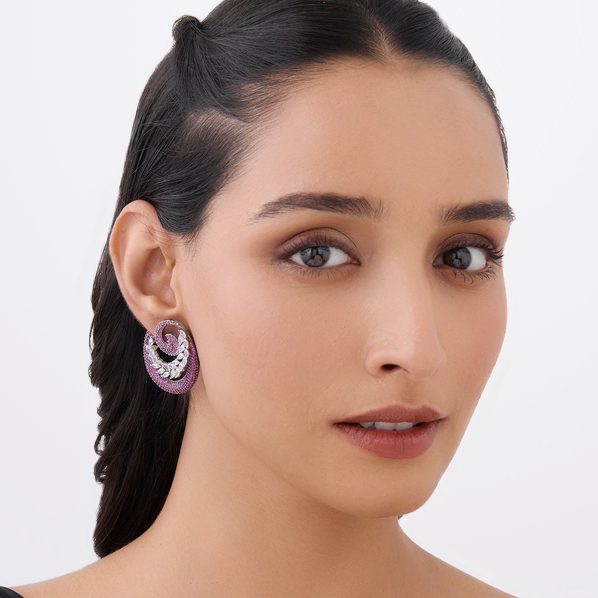 The best way to stand out from the crowd is by wearing unique accessories; our latest pair of zircon earrings is the perfect option. These stud earrings offer a unique look, intricate work details, and heavily studded designs. The black polish and the three colour options ensure to keep all eyes on you at all times.