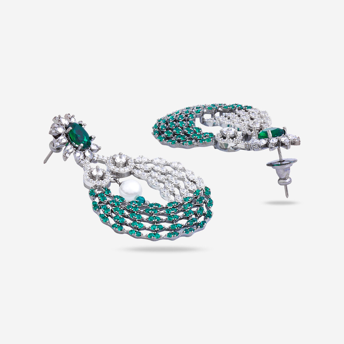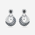 You must have seen accessories with gold, rodium, or rose gold polish, but if you want to stand out from the crowd, our latest pair of zircon earrings is what you need. These hanging earrings are adorned with black polish on the three colour variations to match the royal vibes of the heavily studded zircon stones for a fabulous and eye-catching look.