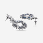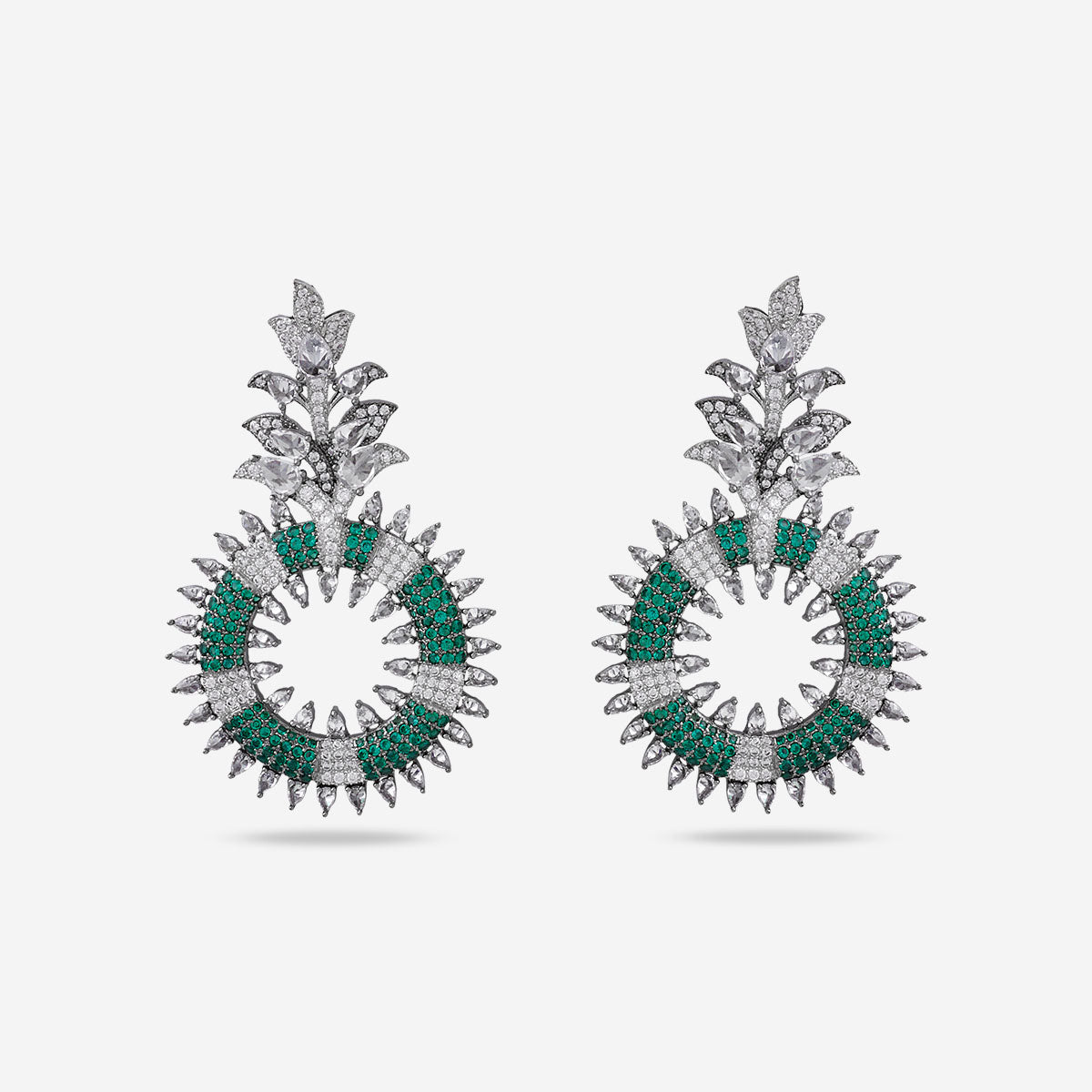 If you think that black polish is not the best option for zircon stones, you may want to look at our latest pair of zircon earrings. These earrings get their beauty and dazzle from the black polish that matches the elegance of the black, green, and ruby stones. These hanging earrings will be your favourite partner.