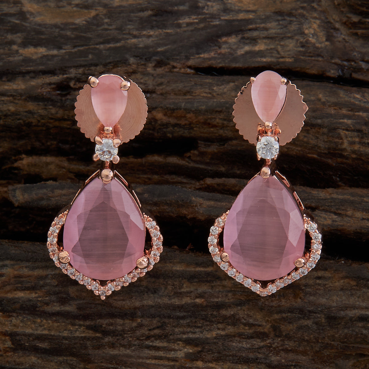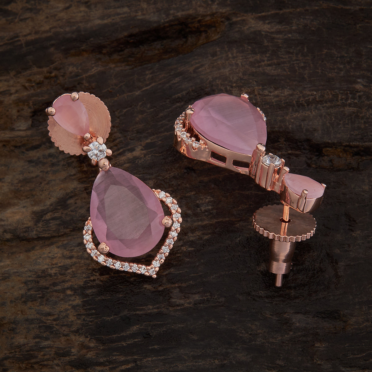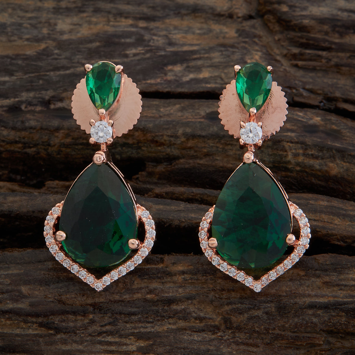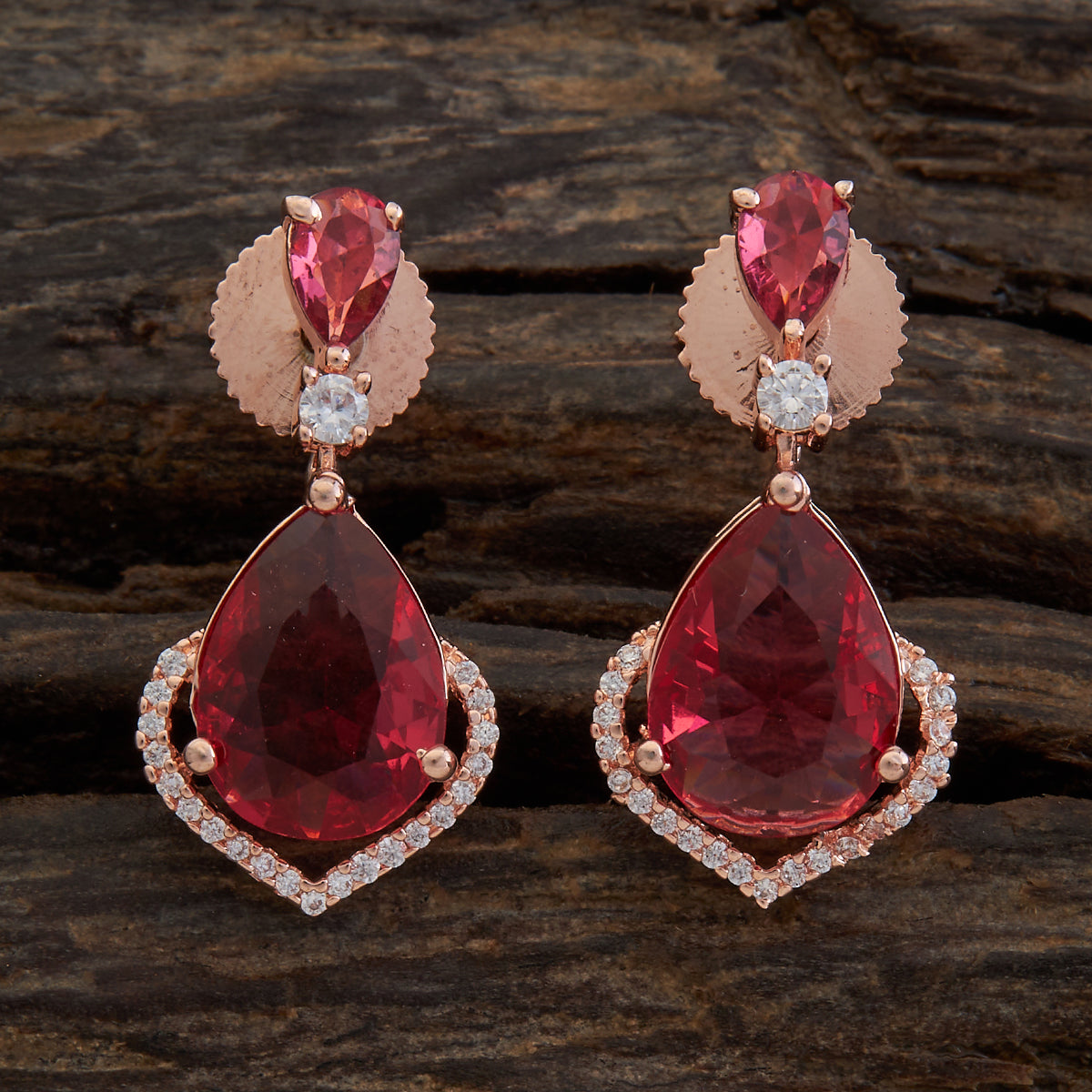 Dazzle with Kushal�s Fashion Jewellery zircon hanging earrings! Featuring a stunning ruby, green, pink, mint or sapphire stone at the centre and a chic rose gold polish, these earrings are perfect for both Western and Indo-western outfits. Add a touch of glamour to your look and shine on!