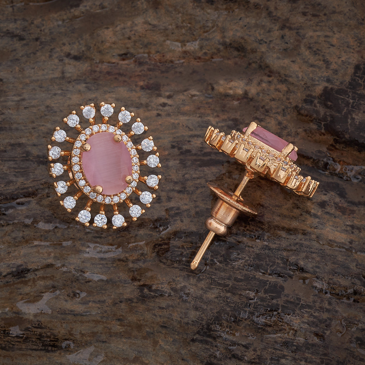 Embrace your unique fashion sense with these zircon earrings. Featuring a shiny gold polish, they’re available in multiple hues including green, mint, pink, ruby and sapphire. Crafted from a copper alloy base, it features a secure push-back closure. Style the zircon-studded studs with a midi dress to create the perfect party look.