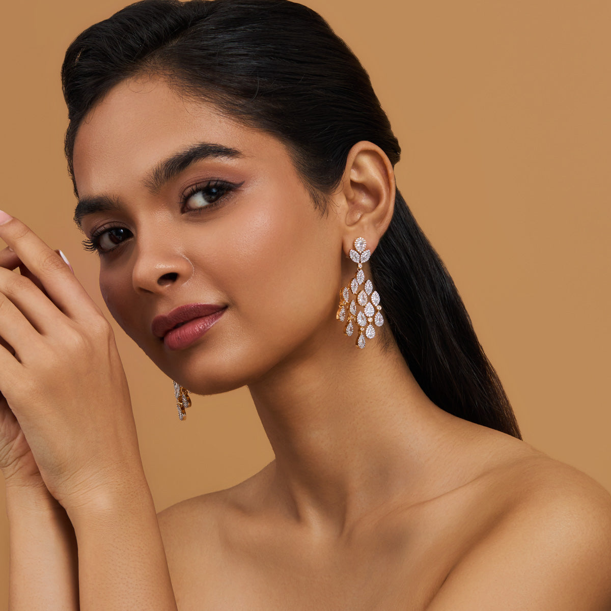 These gorgeous zircon earrings are sure to turn heads all around you. Wearing these is the ideal way to add extra brightness to any ensemble. The shining zircon stones are set on rhodium or rhodium-gold polished copper alloy to enhance their beauty. Pair it with a matching necklace and outshine everyone.