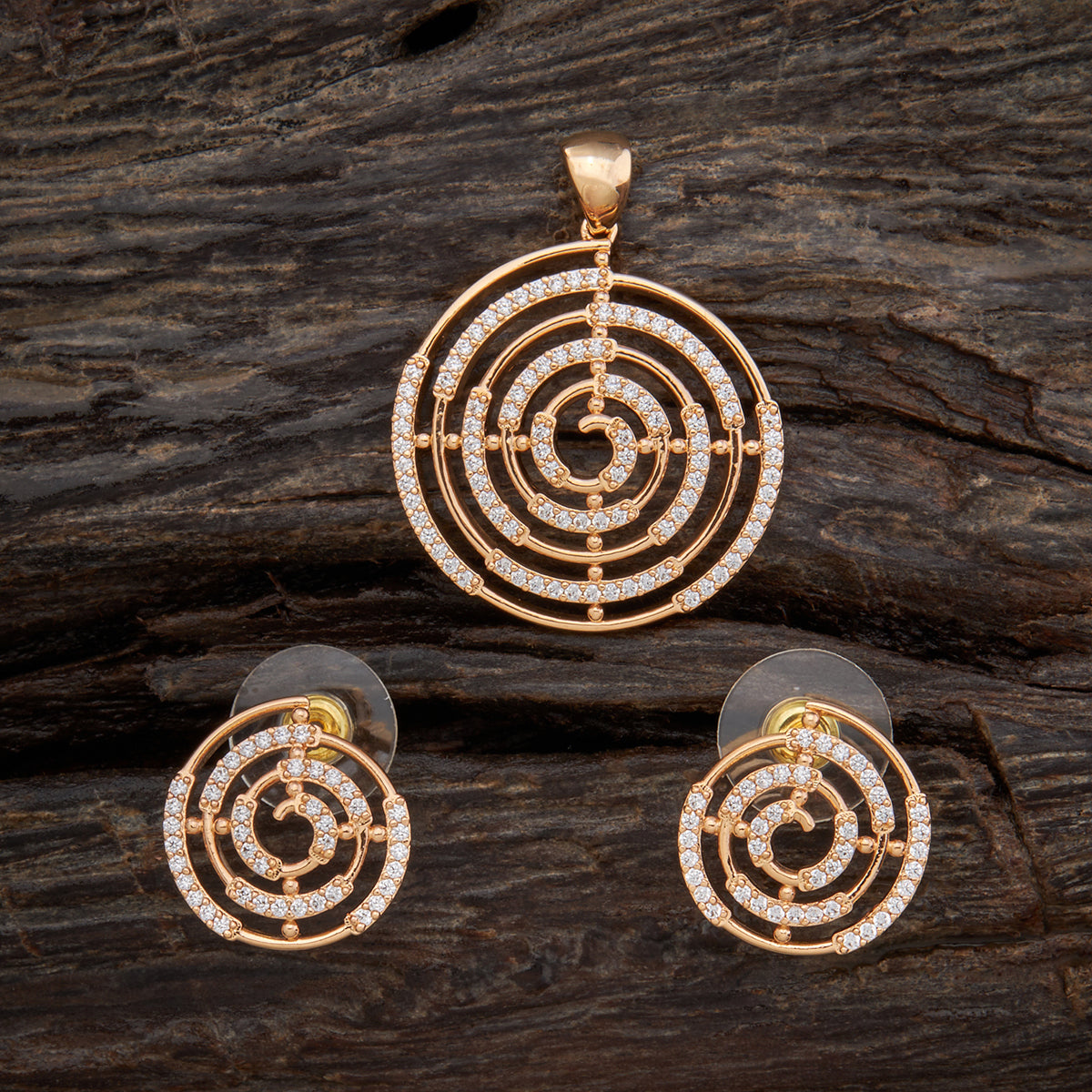 The best part of Kushal's latest white zircon pendant and earrings set is the eye-catching spiral design that will make all eyes rest on you effortlessly. The charming zircon stones complement the three polish options used and ensure to make you the centre of attraction with its minimalistic work details.