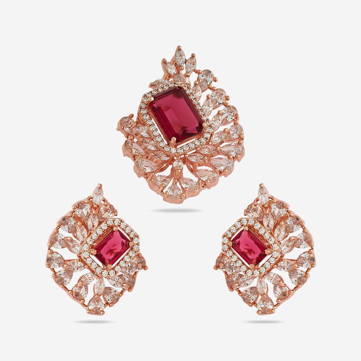 Rectangle Pattern Zircon Pendant Set