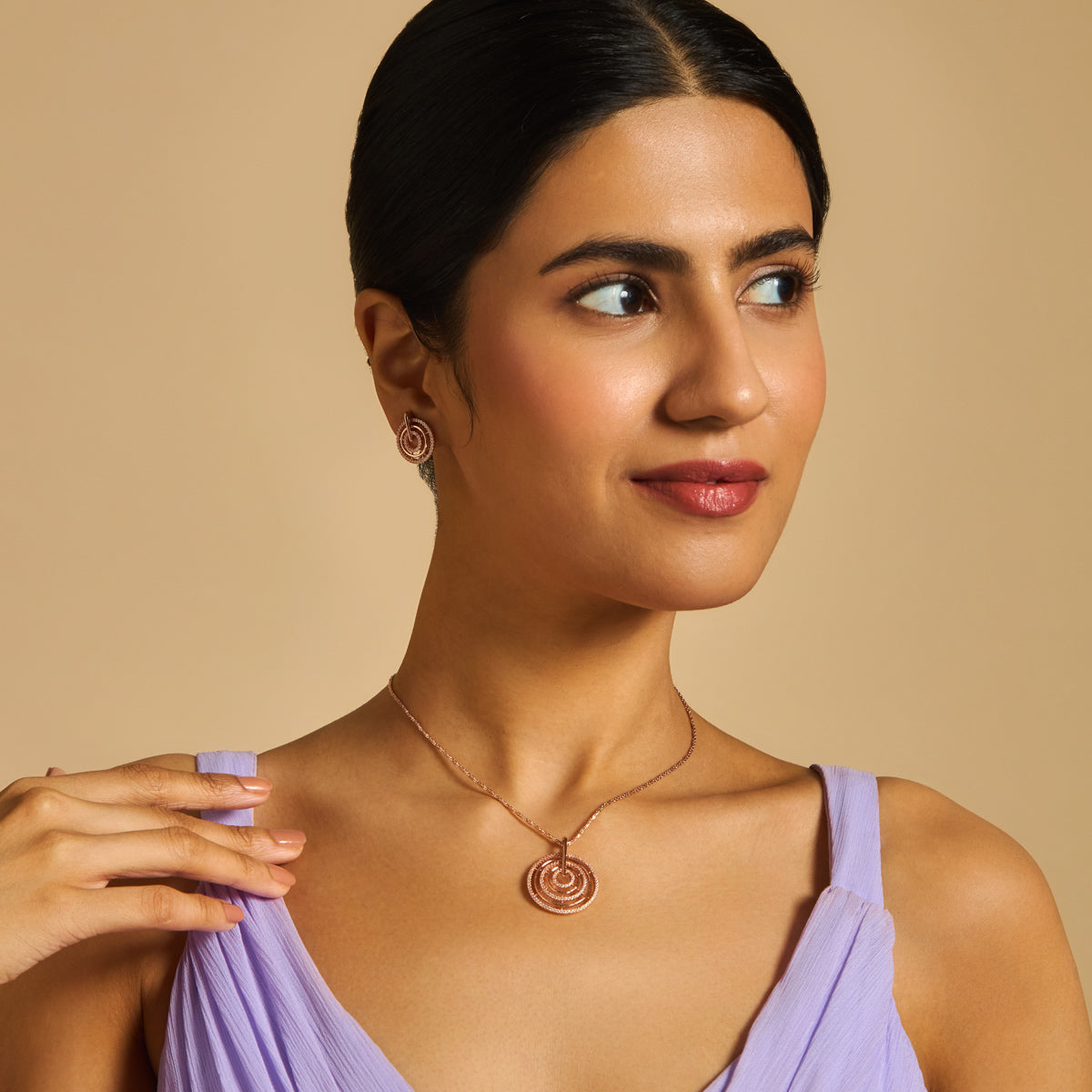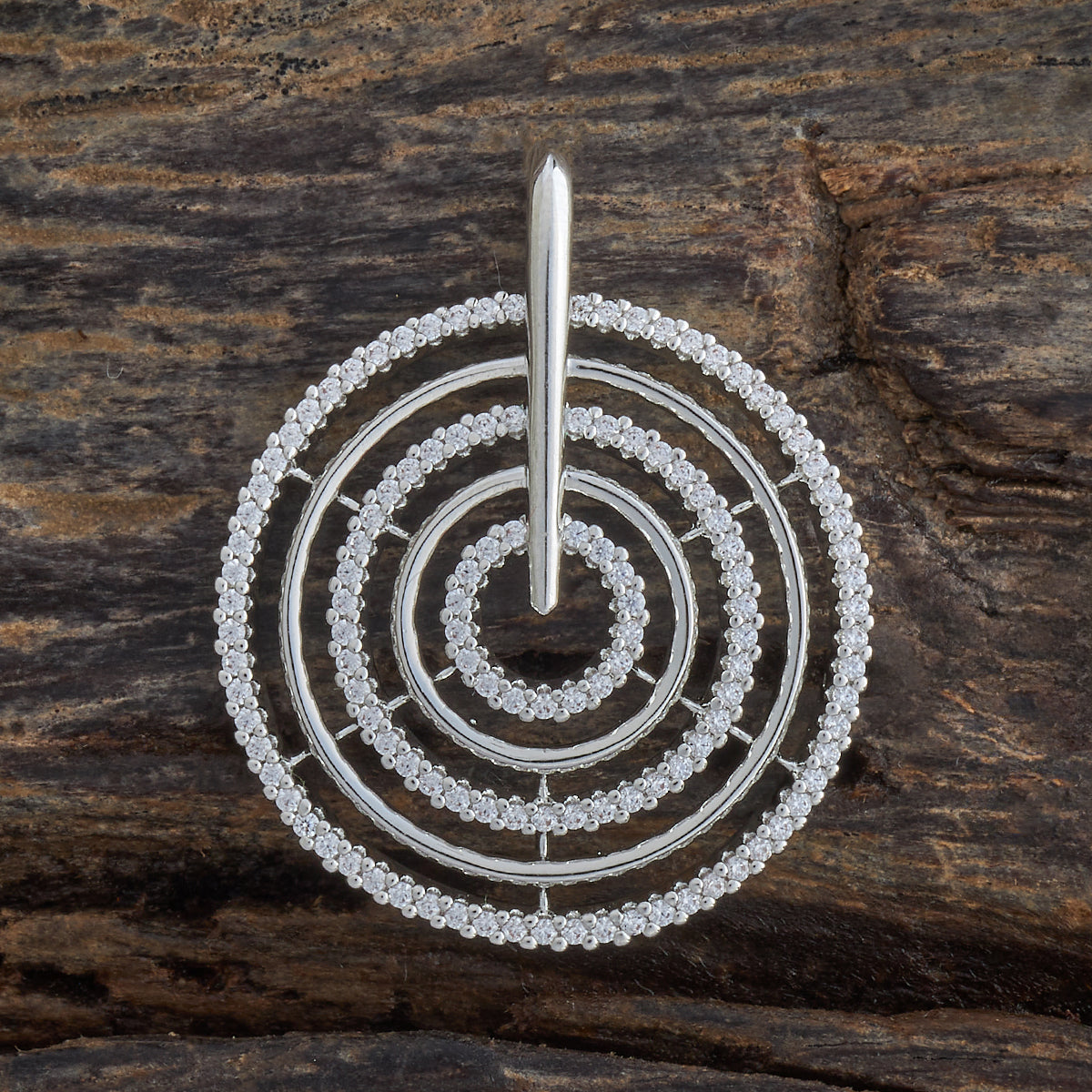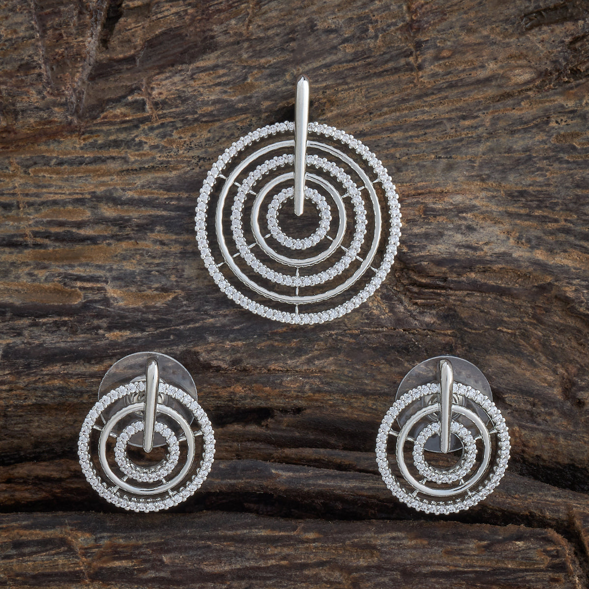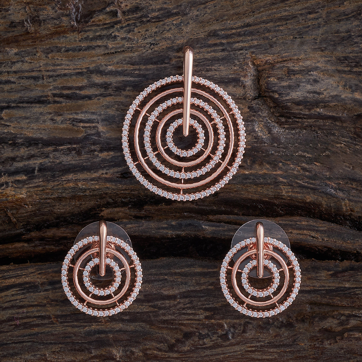 Wear this elegant zircon pendant earring whether it's an office party or a date night to have a minimal look. This pendant set has a circular pendant and push-back earrings for you to complement all your dresses. Crafted with copper alloy, this set is adorned with sparkling white zircon stones over a rhodium or rose gold polish.