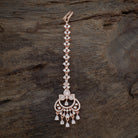 With our newest collection of zircon tikkas for this wedding season, you may flaunt your affection for attractive and sophisticated zircon tikkas. The striking zircon stones in this tikka are embellished with rose gold or gold polish choices. When you pair this eye-catching tikka with your go-to ensemble and complementary earrings, you can be sure to steal the show every time.